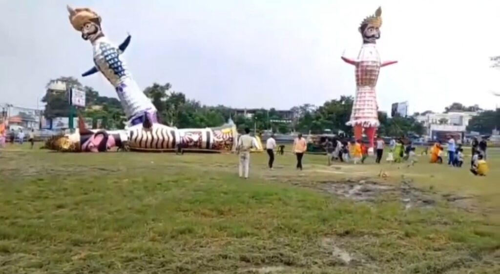 आपको बता दे कि दशहरे के पावन पर्व पर इस बार मौसम ने बड़ा खेल कर दिया गुरुवार की सुबह अचानक आई तेज हवा और बारिश के चलते गांधी पार्क में स्थापित रावण, मेघनाद और कुंभकर्ण की विशाल पुतले धराशायी हो गईं जिससे लोगों में मायूसी छाई रही।