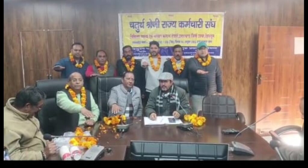 देहरादून । चतुर्थ श्रेणी राज्य कर्मचारी संघ चिकित्सा स्वास्थ्य सेवाएं उत्तराखंड देहरादून का द्विवार्षिक अधिवेशन मुख्य चिकित्सा अधिकारी देहरादून के सभागार में किया गया जिसमें प्रदेश अध्यक्ष/चुनाव अधिकारी दिनेश लखेड़ा चुनाव अधिकारी आशीष रात्रा जिला सचिव/चुनाव अधिकारी मेडिकल पब्लिक हेल्थ मिनिस्ट्रीयल एसोसिएशन देहरादून जिला अध्यक्ष गुरु प्रसाद गोदियाल सौहार्द्रपूर्ण वातावरण में निम्न पदाधिकारियों को निर्विरोध निर्वाचित घोषित किया गया।