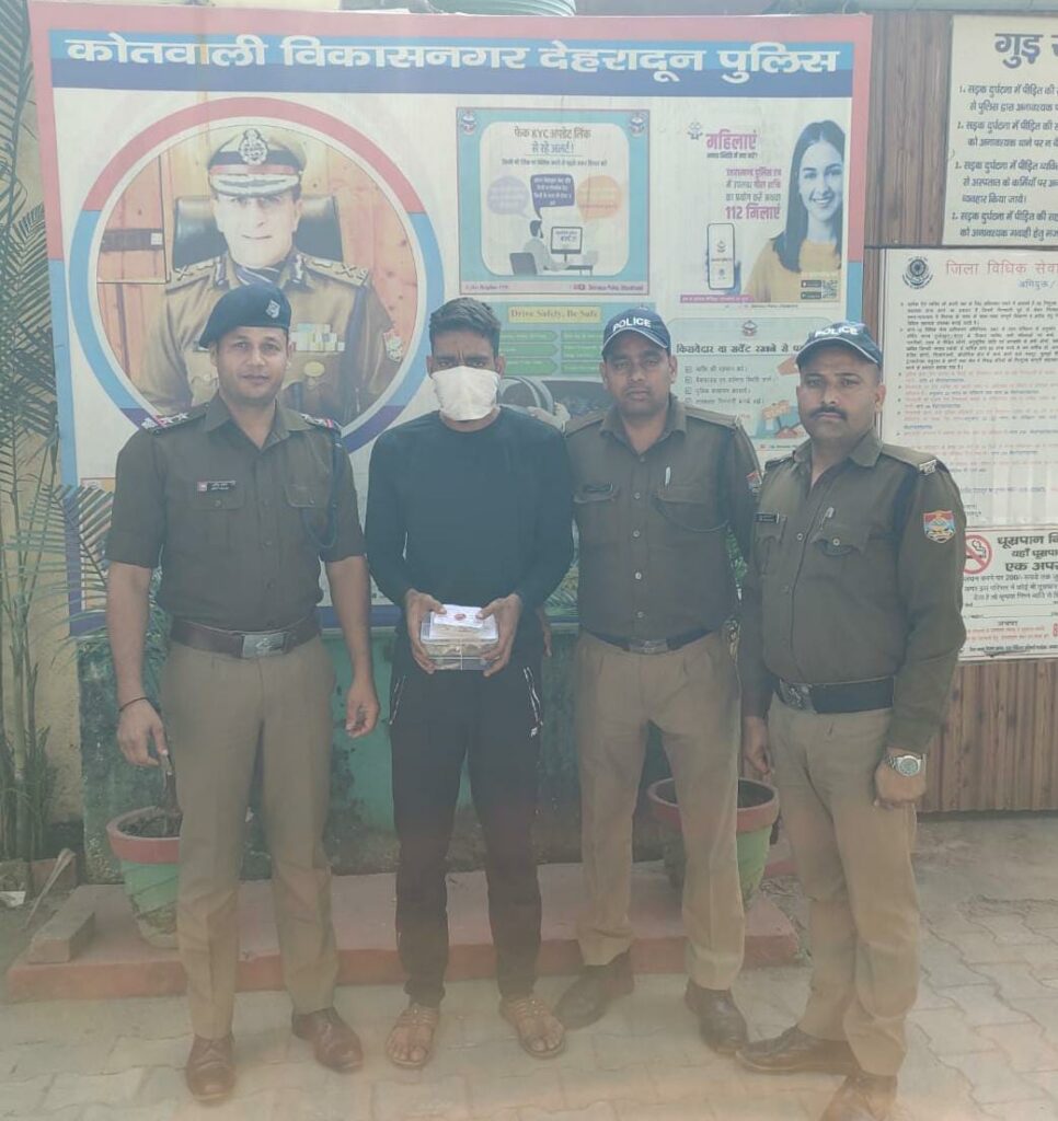 विवरण गिरफ्तार अभियुक्त:दानिश उर्फ भोलू पुत्र राशिद निवासी मुस्लिम बस्ती विकासनगर थाना विकासनगर, जिला देहारदून, उम्र 27 वर्ष *आपराधिक इतिहास :-* 1- मु0अ0स0- 286/2018 धारा 392/411 भादवि, कोतवाली विकासनगर, देहरादून2- मु0अ0स0- 442/2018 धारा 25/4 आर्म्स एक्ट, कोतवाली विकासनगर, देहरादून 3- मु0अ0स0- 92/2019 धारा 25/4 आर्म्स एक्ट, कोतवाली विकासनगर, देहरादून 4- मु0अ0स0- 538/2021 धारा 8/20/27A NDPS ACT, कोतवाली विकासनगर, देहरादून 5- मु0अ0स0- 184/2023 धारा 25/4 आर्म्स एक्ट, कोतवाली विकासनगर, देहरादून 6- मु0अ0स0- 262/2023 धारा 379/411 भादवि, कोतवाली विकासनगर, देहरादून 7- मु0अ0स0- 239/2022 धारा 8/21 ndps act , कोतवाली विकासनगर, देहरादून 8- मु0अ0सं0- 58/2025 धारा -25/4 आर्म्स एक्ट, कोतवाली विकासनगर, देहरादून 9- मु0अ0सं0- 316/2025 धारा -305(ए)/317(2)BNS, कोतवाली विकासनगर, देहरादून