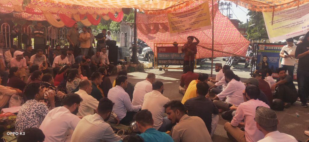देहरादून। उत्तराखंड बेरोजगार संघ का देहरादून के परेड ग्राउंड में धरना 7वे दिन भी जारी है और लगातार अलग अलग दलों के लोग भी यहां पहुंचकर समर्थन करते दिख रहे है उत्तराखंड बेरोजगार संघ के पदाधिकारियों का साफ़ कहना है कि यदि उनकी तीन मुख्य मांगों को नहीं माना गया तो जल्द ही उत्तराखंड बेरोजगार संघ द्वारा प्रदेश के युवाओं को देहरादून बुलाया जाएगा और शहर को पूरी तरह जाम किया जाएगा।